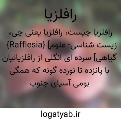 {Rafflesia} [زیست شناسی- علوم گیاهی] سرده ای انگلی از رافلزیائیان با پانزده تا نوزده گونه که همگی بومی آسیای جنوب شرقی هستند؛ این گیاهان ساقه و ریشه و برگ واقعی ندارند و تنها بخش قابل رؤیت آنها در بیرون از بافت میزبان، گلی درشت و پنج گلبرگی است که در گونه های مخ...