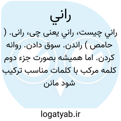 رانی. ( ع ص ) ران. نعت فاعلی از ریشه «رنو» و اعلال شده آن «ران » می باشد. شخص پیوسته نگرنده بسوی چیزی. ( ناظم الاطباء ). و رجوع به ران [ نِن ْ ] شود.