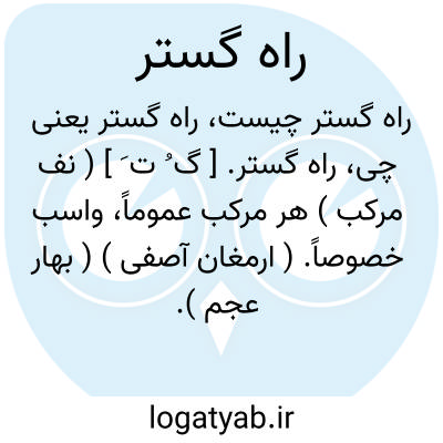 راه گستر. [ گ ُ ت َ ] ( نف مرکب ) هر مرکب عموماً، واسب خصوصاً. ( ارمغان آصفی ) ( بهار عجم ). هر مرکوبی اعم از اسب و استر و خر و گاو و اشتر و جز آن. ( ناظم الاطباء ) ( از برهان ) ( آنندراج ) ( از انجمن آرا ) ( از شعوری ج 2 ورق 5 ). مرکب. ( شرفنامه منیری ):