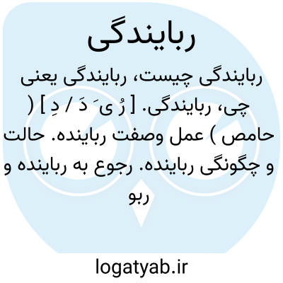 ربایندگی. [ رُ ی َ دَ / دِ ] ( حامص ) عمل وصفت رباینده. حالت و چگونگی رباینده. رجوع به رباینده و ربودن شود. || اخذ و گرفتگی. ( ناظم الاطباء ). || دزدی و سرقت. ( ناظم الاطباء ).