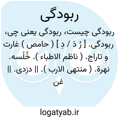 ربودگی. [ رُ دَ / دِ ] ( حامص ) غارت و تاراج. ( ناظم الاطباء ). خُلْسه. نهرة. ( منتهی الارب ). || دزدی. || غنیمت. ( ناظم الاطباء ).