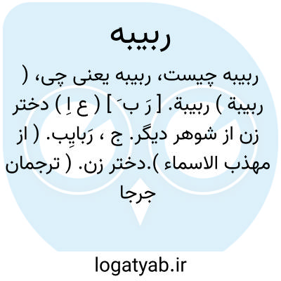 ( ربیبة ) ربیبة. [ رَ ب َ ] ( ع اِ ) دختر زن از شوهر دیگر. ج، رَبایِب. ( از مهذب الاسماء ).دختر زن. ( ترجمان جرجانی ص 51 ) ( از اقرب الموارد ). دختر زن که آنرا زن از شوهر سابق همراه آورده باشد. ( غیاث اللغات ). دختر زن مرد از غیر او. ( منتهی الارب ) ( ناظم الاطباء ) ( آنندراج ). دختراندر. ( دهار ) ( فرهنگ فارسی معین ). دختر پس آورد و دختر زن. ( ناظم الاطباء ). دختندر. نادختری. دختر زن از شوهر پیش نسبت به شوهر کنونی. ( یادداشت مرحوم دهخدا ). || دایه و آنچه بجای او باشد. ( منتهی الارب ) ( ناظم الاطباء ) ( آنندراج ). دایه. پرستار کودک. ج، ربایب. ( فرهنگ فارسی معین ). || گوسپند خانگی جهت شیر. ( منتهی الارب ) ( ناظم الاطباء ) ( از اقرب الموارد ) ( آنندراج ). گوسفند دوشاب که در خانه دارند. ( دهار ). || بره در خانه پرورده. ج، رَبائِب. ( منتهی الارب ) ( ناظم الاطباء ) ( آنندراج ). || زن مرد در صورتی که او را از شوهر پیشین پسری باشد. ( از اقرب الموارد ). || دختر شوهر از زوجه دیگر. دختراندر.