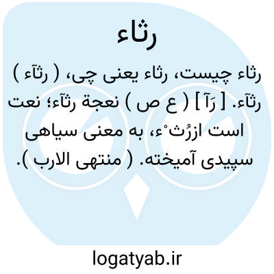 ( رثآء ) رثآء. [ رَآ ] ( ع ص ) نعجة رثآء؛ نعت است ازرُث ْء، به معنی سیاهی سپیدی آمیخته. ( منتهی الارب ).