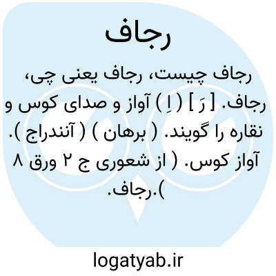 رجاف. [ رَ ] ( اِ ) آواز و صدای کوس و نقاره را گویند. ( برهان ) ( آنندراج ). آواز کوس. ( از شعوری ج 2 ورق 8 ).