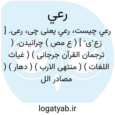 رعی. [ رَع ْی ْ ] ( ع مص ) چرانیدن. ( ترجمان القرآن جرجانی ) ( غیاث اللغات ) ( منتهی الارب ) ( دهار ) ( مصادر اللغه زوزنی ) ( تاج المصادر بیهقی ). به چرا بردن [ گوسفندان و مانند آنها را ]. ( از فرهنگ فارسی معین ). مصدر به معنی رعایة. ( ناظم الاطباء ). چراندن. چرانیدن. شبانی. ( یادداشت مؤلف ):