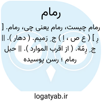 رمام. [ رِ ] ( ع ص، اِ ) ج ِ رَمیم. ( دهار ). || ج ِ رِمّة. ( از اقرب الموارد ). || حبل رمام؛ رسن پوسیده. ( منتهی الارب ) ( المنجد ). رسن کهنه و پوسیده. ( آنندراج ). || ج ِ رِمّة. استخوانهای پوسیده. ( از اقرب الموارد ) ( آنندراج ). || مورچه پردار و کرمک چوبخوار. ( از منتهی الارب ) ( آنندراج ) ( اقرب الموارد ). رجوع به رمیم و رِمّة شود.