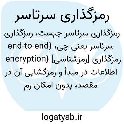 {end-to-end encryption} [رمزشناسی] رمزگذاری اطلاعات در مبدأ و رمزگشایی آن در مقصد، بدون امکان رمزگشایی در نقاط میانی