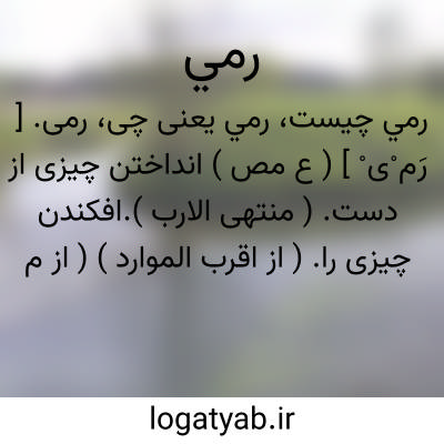 رمی. [ رَم ْی ْ ] ( ع مص ) انداختن چیزی از دست. ( منتهی الارب ).افکندن چیزی را. ( از اقرب الموارد ) ( از معجم متن اللغة ). رمایة. ( اقرب الموارد ). افکندن. پرتاب کردن.