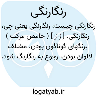 رنگارنگی. [ رَ رَ ] ( حامص مرکب ) برنگهای گوناگون بودن. مختلف الالوان بودن. رجوع به رنگارنگ شود.