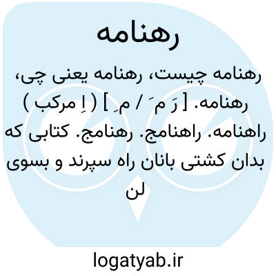 رهنامه. [ رَ م َ / م ِ ] ( اِ مرکب ) راهنامه. راهنامج. رهنامج. کتابی که بدان کشتی بانان راه سپرند و بسوی لنگرگاه و جز آن پی برند. معرب آن رهنامج و راهنامج است. ( یادداشت مؤلف ). کتاب شناساننده راهها: دگرگونه در دفتر آرد دبیر ز رهنامه ره شناسان پیر.نظامی.ز رهنامه چون بازجستند راز سوی بازپس گشتن آمد نیاز.نظامی.ز خاقان بپرسید کاین شهر کیست به رهنامه در نام این شهر چیست.نظامی.رجوع به مترادفات کلمه شود.