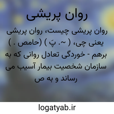 ( ~. پَ ) (حامص. ) برهم - خوردگی تعادل روانی که به سازمان شخصیت بیمار آسیب می رساند و به صورت نا راحتی، ناتوانی یا تعارض با فرهنگ و رفتار پذیرفته شده در جامعه بروز می کند، پسیکوز.