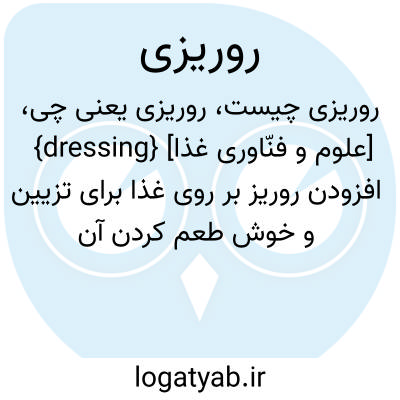 {dressing} [علوم و فنّاوری غذا] افزودن روریز بر روی غذا برای تزیین و خوش طعم کردن آن
