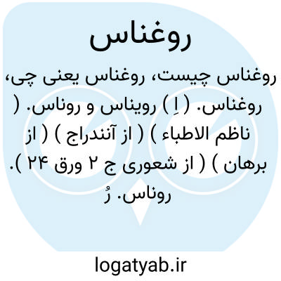 روغناس. ( اِ ) رویناس و روناس. ( ناظم الاطباء ) ( از آنندراج ) ( از برهان ) ( از شعوری ج 2 ورق 24 ). روناس. رُنّاس. روین. فُوَة. عروق حُمر. ( یادداشت مؤلف ). رجوع به روناس و رویناس شود.