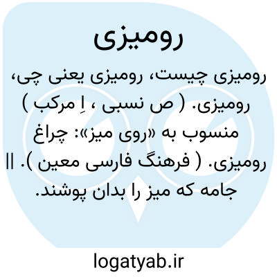 ( صفت ) ۱ - منسوب به [[ روی میز ]]: چراغ رومیزی. ۲ - آنچه که روی میز کشند از پارچه مشمع نایلون و غیره.