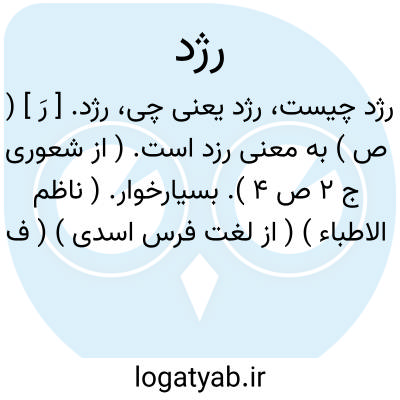 رژد. [ رَ ] ( ص ) به معنی رزد است. ( از شعوری ج 2 ص 4 ). بسیارخوار. ( ناظم الاطباء ) ( از لغت فرس اسدی ) ( فرهنگ جهانگیری ) ( برهان )( آنندراج ). بسیارخواره. رزد. ( از فرهنگ سروری ). لغت رژد را آقای اقبال در وسط لغت نبرد و هم آورد آورده،از اینرو شاید اصل لغت هم ژرد با تقدیم «ژ» باشد. در مجمع الفرس سروری خطی و برهان خطی نیز با تقدیم «ژ» یعنی ژرد دیده شد. ( یادداشت مؤلف ). و رجوع به ژردو رزد شود. || حریص در همه چیز. ( ناظم الاطباء ) ( برهان ) ( آنندراج ). حریص. ( فرهنگ جهانگیری ).