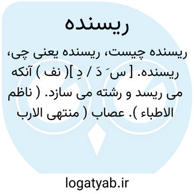 ریسنده. [ س َ دَ / دِ ]( نف ) آنکه می ریسد و رشته می سازد. ( ناظم الاطباء ). عصاب ( منتهی الارب ): غازلة؛ زن ریسنده. ( منتهی الارب ).