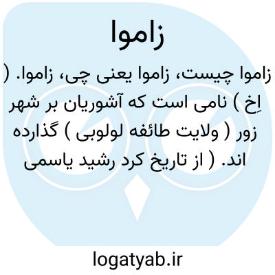 زاموا. ( اِخ ) نامی است که آشوریان بر شهر زور ( ولایت طائفه لولوبی ) گذارده اند. ( از تاریخ کرد رشید یاسمی ص 46 ). و در ص 50 از همان کتاب آمده: پارسوا و نمری در سال 828 ق. م. مجدداً بدست آشوریان مفتوح گردید ودر تمام این مدت که ذکر شد ولایت شهر زور ( زاموا ) درتصرف آشوریان بود. و رجوع به ص 49 همان کتاب شود.