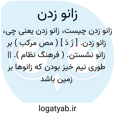 زانو زدن. [ زَ دَ ] ( مص مرکب ) بر زانو نشستن. ( فرهنگ نظام ). || طوری نیم خیز بودن که زانوها بر زمین باشد. ( فرهنگ نظام ).
