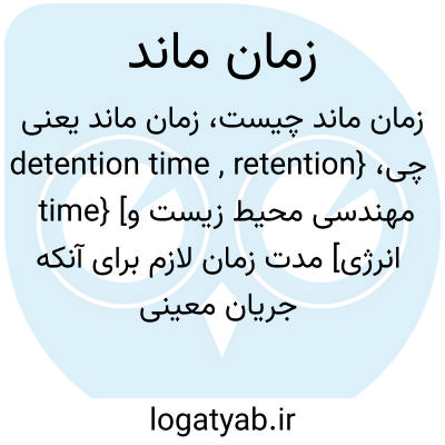 {detention time , retention time} [مهندسی محیط زیست و انرژی] مدت زمان لازم برای آنکه جریان معینی از سیال مخزنی را پر کند، یا مدت زمان نظری لازم برای گذر جریان معین سیال از مخزن
