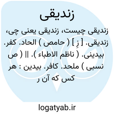 زندیقی. [ زِ ] ( حامص ) الحاد. کفر. بیدینی. ( ناظم الاطباء ). || ( ص نسبی ) ملحد. کافر. بیدین: هر کس که آن را از فلک و کواکب داند...معتزلی و زندیقی و دهری شود و جای وی در دوزخ بود. ( تاریخ بیهقی چ ادیب ص 93 ). رجوع به ماده قبل شود.