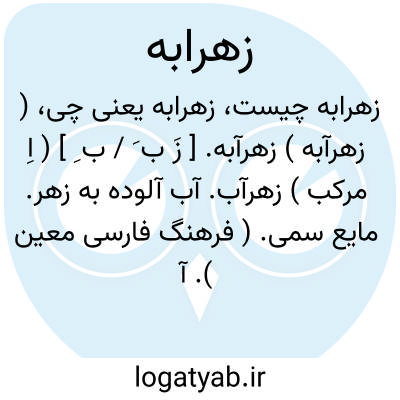 ( زهرآبه ) زهرآبه. [ زَ ب َ / ب ِ ] ( اِ مرکب ) زهرآب. آب آلوده به زهر. مایع سمی. ( فرهنگ فارسی معین ). آب زهردار. ( ناظم الاطباء ). از عالم خونابه. ( آنندراج ):