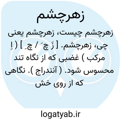 زهرچشم. [ زَ چ َ / چ ِ ] ( اِ مرکب ) غضبی که از نگاه تند محسوس شود. ( آنندراج ). نگاهی که از روی خشم و غضب کنند. ( فرهنگ فارسی معین ).