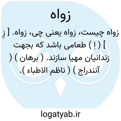 زواه. [ زِ ] ( اِ ) طعامی باشد که بجهت زندانیان مهیا سازند. ( برهان ) ( آنندراج ) ( ناظم الاطباء ). طعامی بود که به زندانیان دهند. ( لغت فرس اسدی چ اقبال ص 469 ). طعامی باشد که از بهر زندانیان سازند. ( صحاح الفرس ). طعامی که برای زندانیان پزند... ( فرهنگ رشیدی ). در فرهنگ اسدی چ پاول هورن می نویسد: طعامی بود که برای زندانیان سازند. گویند این طعام زواه فلان زندانیست. عنصری گفت: