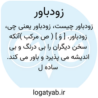 ( صفت ) آنکه سخن دیگران را بیدرنگ باور میکند ساده لوح مقابل دیر باور.