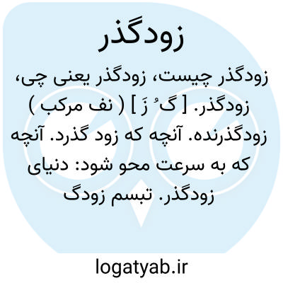 زودگذر. [ گ ُ زَ ] ( نف مرکب ) زودگذرنده. آنچه که زود گذرد. آنچه که به سرعت محو شود: دنیای زودگذر. تبسم زودگذر. ( فرهنگ فارسی معین ).