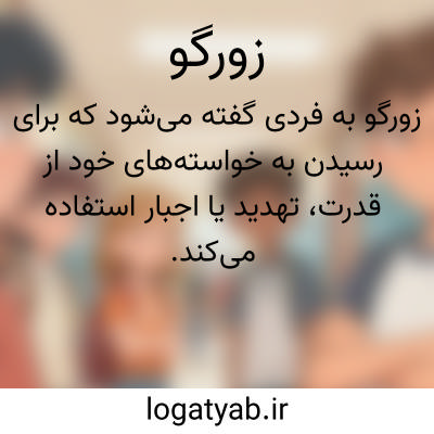 زورگو به فردی گفته می‌شود که برای رسیدن به خواسته‌های خود از قدرت، تهدید یا اجبار استفاده می‌کند. این فرد معمولاً حقوق یا نظر دیگران را نادیده می‌گیرد و تلاش می‌کند با برتری یا فشار، شرایط را به نفع خود تغییر دهد. زورگویی می‌تواند در روابط شخصی، اجتماعی یا حتی در محیط‌های کاری رخ دهد.