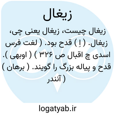 زیغال. ( اِ ) قدح بود. ( لغت فرس اسدی چ اقبال ص 326 ) ( اوبهی ). قدح و پیاله بزرگ را گویند. ( برهان ) ( آنندراج ) ( ناظم الاطباء ):