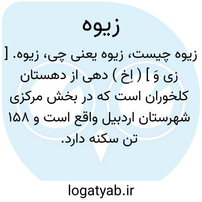 زیوه. [ زی وَ ] ( اِخ ) دهی از دهستان کلخوران است که در بخش مرکزی شهرستان اردبیل واقع است و 158 تن سکنه دارد. ( از فرهنگ جغرافیایی ایران ج 4 ).