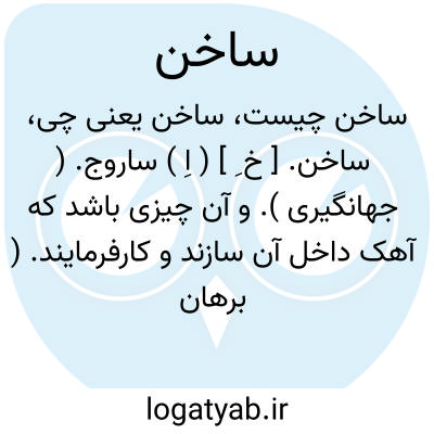 ساخن. [ خ ِ ] ( اِ ) ساروج. ( جهانگیری ). و آن چیزی باشد که آهک داخل آن سازند و کارفرمایند. ( برهان )... که در حوض و حمام کار کنند. ( انجمن آرا ) ( آنندراج ). سارو. چارو. ساروج. صاروج. || روح حیوانی ( ؟ ). ( از شعوری ج 2 ورق 70 ).