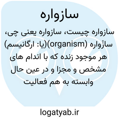 (یا: ارگانیسم) هر موجود زنده که با اندام های مشخص و مجزا و در عین حال وابسته به هم فعالیت های حیاتی خود را صورت می دهد. سازواره ممکن است بسیار ساده و فقط متشکل از یک یاخته باشد یا این که از میلیاردها یاخته تشکیل شود.