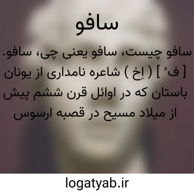 شاعره مشهور و زیبای یونان باستان (و. قصبه ارسبوس اوایل قر.۶ ق م. ). وی از خاندانی اشرافی بود و اوایل عمر را در میتیلین گذرانید و مدتی در انقلابات عصر خود شرکت کرد و بسبب حوادث سیاسی از جانب پیتاکوس به صقلیه ( سیسیل ) تبعید شد. طبق روایات او به فائون دل بست و بسبب بیمهری معشوق خود را از فراز صخره لوقاده بزیر افکند و جان سپرد. سافو زیبایی شادی و اندوه عشق و هوس را ستایش میکرد. او مدرسه ای تاسیس کرد و در آن بدختران درس شاعری میداد. در فن شعر موجد سبکی مخصوص بود که بشعر سافیک موسوم است. در موسیقی و آوازمهارت داشت. آثار شعری او را در نه کتاب گرد آورده اند که در آنها از ظرافت زیبایی عشق و حسد سخن رفته. از آن جمله اکنون فقط دو منظومه کامل و ابیاتی پرکنده در دست است. زندگانی سافو موضوع آثار متعدد در ادبیات و هنر اروپایی قرار گرفته. داستانها نمایشنامه ها و نغمه ها و اشعار و مجسمه ها و تصویرهای بسیار از وی ساخته اند که برخی از آنها در رم ناپل و پاریس موجود است.