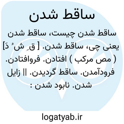 ( مصدر ) ۱ - افتادن فرو افتادن. ۲ - زایل شدن نابود گشتن. ۳ - حذف شدن ( اسم از دفتر و مانند آن ). ۴ - نا مذکور ماندن ( در درج کلام ). یا ساقط شدن بچه افتادن بچه ناتمام از شکم مادر. یا ساقط شدن تکلیف ادا شدن تکلیف رفع تکلیف. یا ساقط شدن حق ادا شدن حق.