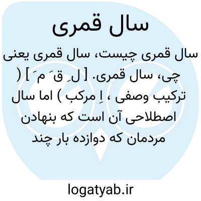 سال قمری. [ ل ِ ق َ م َ ] ( ترکیب وصفی، اِ مرکب ) اما سال اصطلاحی آن است که بنهادن مردمان که دوازده بار چند ماه طبیعی است و اندازه وی سیصد و پنجاه و چهار روز است و پنجیک روز شش یک او جمله کرده و این یازده تیربود اگر شباروزی سی تیر بود و این سال قمری خوانند. ( التفهیم ص 221 ). رجوع به سال طبیعی و سال شود.