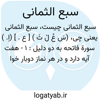 (سَ عُ لْ ثَ ) [ ع. ] (اِ. ) سورة فاتحه به دو دلیل: ۱ - هفت آیه دارد و در هر نماز دوبار خوانده می شود. ۲ - دوبار بر پیامبر (ص ) نازل شده است.