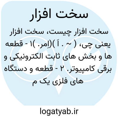 {hardware} [رایانه و فنّاوری اطلاعات] تمامی اجزای فیزیکی سامانۀ رایانه ای از قبیل بخش های الکترونیکی و الکترومکانیکی، مانند تخته مدار و دستگاه های جانبی و ورودی و خروجی