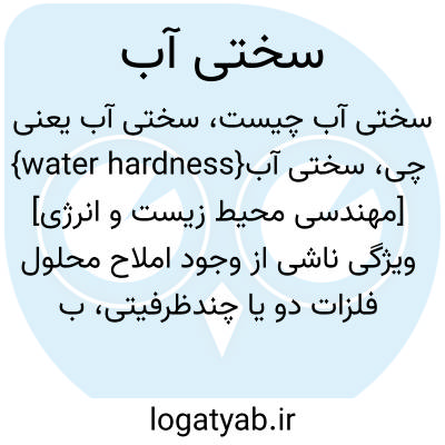 {water hardness} [مهندسی محیط زیست و انرژی] ویژگی ناشی از وجود املاح محلول فلزات دو یا چندظرفیتی، به ویژه کلسیم و منیزیم، در آب