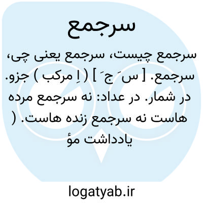 سرجمع. [ س َ ج َ ] ( اِ مرکب ) جزو. در شمار. در عداد: نه سرجمع مرده هاست نه سرجمع زنده هاست. ( یادداشت مؤلف ).