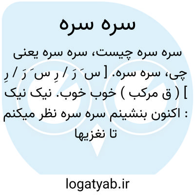 سره سره. [ س َ رَ / رِ س َ رَ / رِ ] ( ق مرکب ) خوب خوب. نیک نیک: اکنون بنشینم سره سره نظر میکنم تا نغزیهای ترا ای اﷲ می بینم. ( کتاب المعارف ).