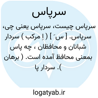 بر سر توهمی زند سرپاس.مسعودسعد.|| در اواخر دوره سلطنت رضاشاه و اوایل سلطنت پهلوی دوم، «سرپاس » به همردیف سرتیپ در تشکیلات شهربانی ( نظمیه ) اطلاق میشد و اینک مجدداً سرتیپ گفته میشود. ( از حاشیه برهان قاطع چ معین ). پایور شهربانی. نظیر سرتیپ ارتش. ( فرهنگستان ).