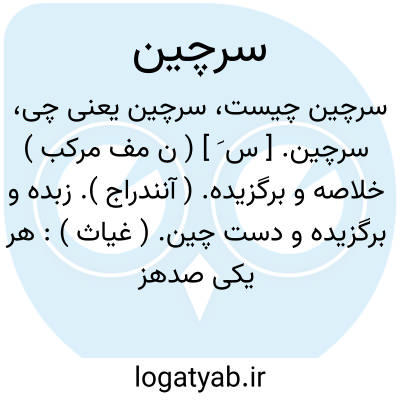 سرچین. [ س َ ] ( ن مف مرکب ) خلاصه و برگزیده. ( آنندراج ). زبده و برگزیده و دست چین. ( غیاث ):