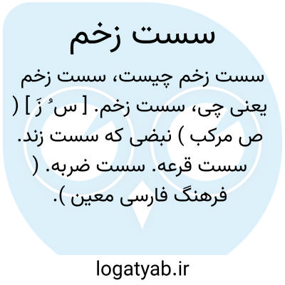 سست زخم. [ س ُ زَ ] ( ص مرکب ) نبضی که سست زند. سست قرعه. سست ضربه. ( فرهنگ فارسی معین ).