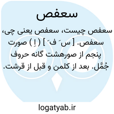 سعفص. [ س َ ف َ ] ( اِ ) صورت پنجم از صورهشت گانه حروف جُمَّل. بعد از کلمن و قبل از قرشت.