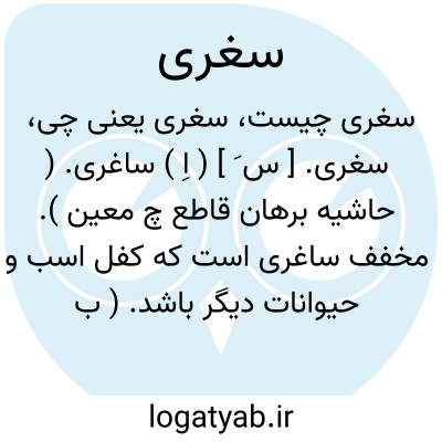 سغری. [ س َ ] ( اِ ) ساغری. ( حاشیه برهان قاطع چ معین ). مخفف ساغری است که کفل اسب و حیوانات دیگر باشد. ( برهان ) ( آنندراج ).