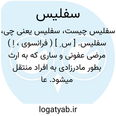 سفلیس. [ س ِ ] ( فرانسوی، اِ ) مرضی عفونی و ساری که به ارث بطور مادرزادی به افراد منتقل میشود. عامل این ناخوشی باسیلی است مارپیچی بنام ترپونم پال این مرض بطور مستقیم از افراد مبتلی به افراد سالم قابل سرایت است. کوفت. ( از فرهنگ فارسی معین ). رجوع به سیفلیس شود.