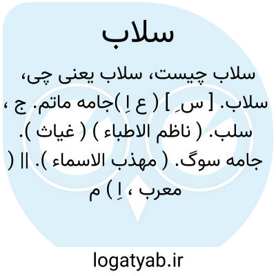 سلاب. [ س ِ ] ( ع اِ )جامه ماتم. ج، سلب. ( ناظم الاطباء ) ( غیاث ). جامه سوگ. ( مهذب الاسماء ). || ( معرب، اِ ) مخفف اسطرلاب و این لفظ اگر چه یونانی است اما چون این تخفیف را اهل فرس کرده اند مذکور شد. ( رشیدی ):