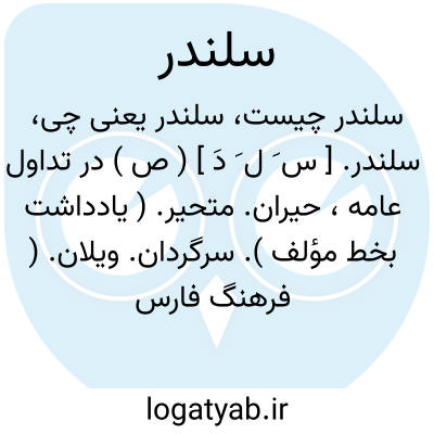 سلندر. [ س َ ل َ دَ ] ( ص ) در تداول عامه، حیران. متحیر. ( یادداشت بخط مؤلف ). سرگردان. ویلان. ( فرهنگ فارسی معین ). که نداند تکلیف او چیست. سرگردان و سلندر. سخت سرگشته و آواره.